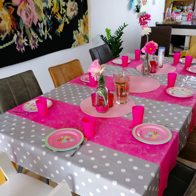 • Bordjes, bekertjes en een tafelkleed (geen wegwerpartikelen)